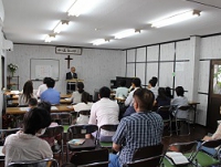 大人から子どもまで、一緒に集まり、神様を賛美し、感謝の祈りを捧げ、心の糧として、神のことば聖書から学びます。